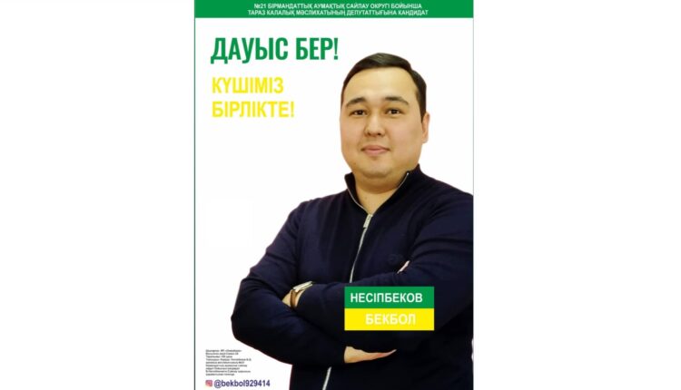 №21 бір мандаттық аумақтық сайлау округі бойынша Тараз қалалық мәслихатының депутаттығына кандидат Несіпбеков Бекбол Болысханұлы