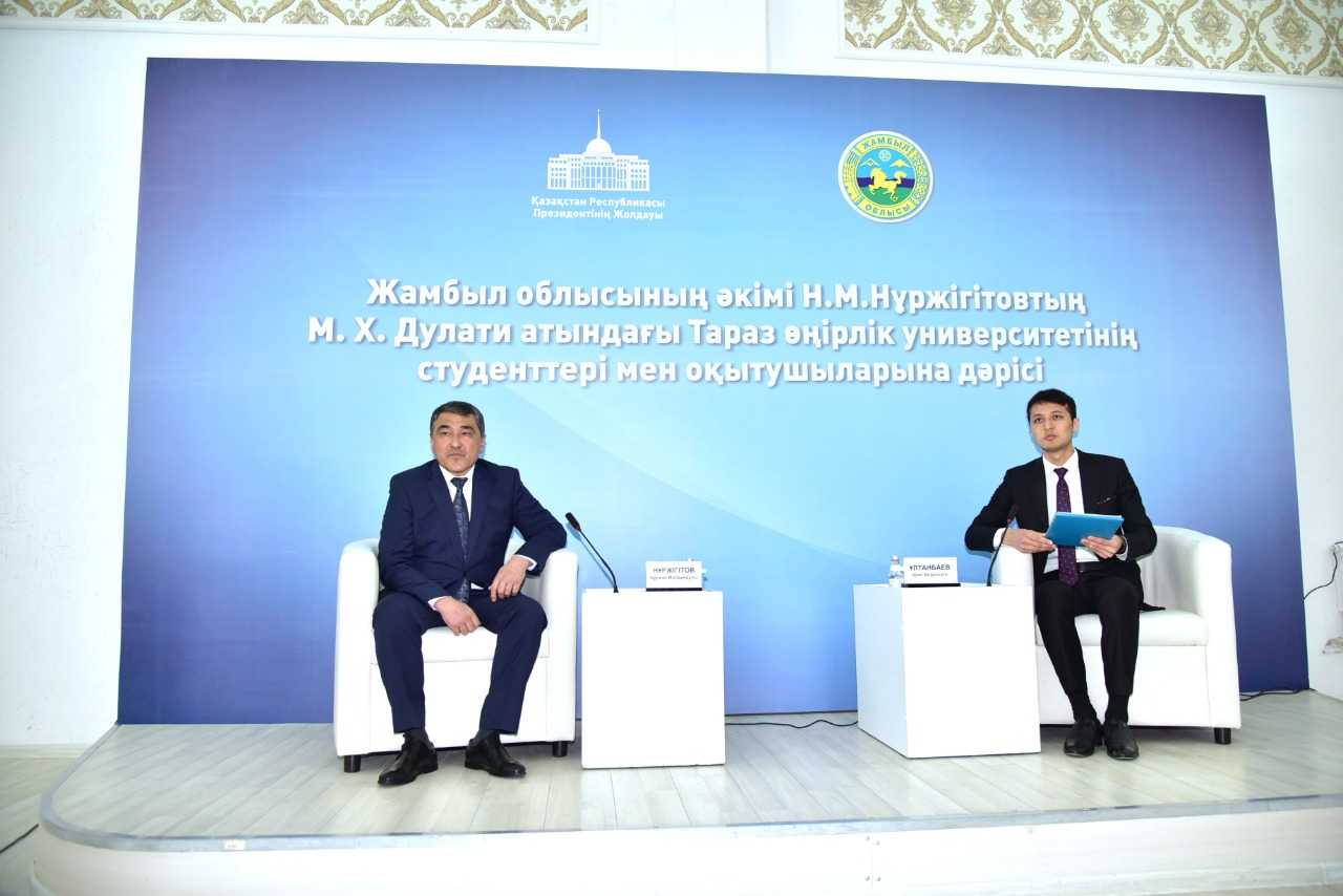 Облыс әкімі Нұржан Нұржігітовтің М.Х.Дулати атындағы Тараз өңірлік университетінің студенттерімен кездесуге осы тақырыпты таңдауы да бекер емес. Өңір басшысы лекцияда Мемлекет басшысының Жолдауынан туындаған тапсырмалардың қалай жүзеге асырылып жатқанына тоқталды.