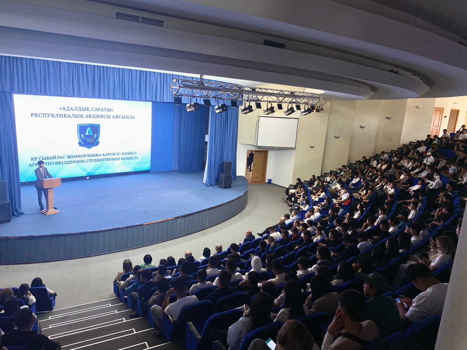Лекция барысында әділетті қоғам құру жолында сыбайлас жемқорлыққа қарсы мәдениет қалыптастырудың маңыздылығы туралы айтылды. Сонымен қатар, білім беру ұйымдарының алдында тұрған міндеті тілге тиек етілді. Себебі заман талабына сәйкес өскелең ұрпақтың тек білімді әрі тәрбиелі болуы жеткіліксіз. Білім ұйымдары жастардың бойында адалдық, әділдік, парасаттылық қасиеттерін дарытып, саналы ұрпақ қалыптасуына бар күш жігерін салуы керек, сонда ғана елімізде ҚР Заңдары сақталатын, құқықбұзушылықтарға жол берілмейтін адал орта қалыптасатын болады. Лекция барысында студенттер өздерін толғандырып жүрген сұрақтар қойып, әділетті қоғам қалыптастыруға атсалысатындарын жеткізді.