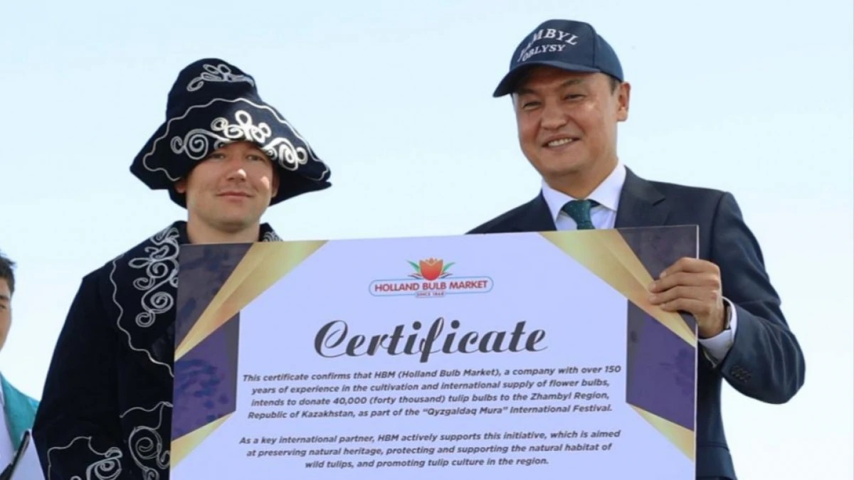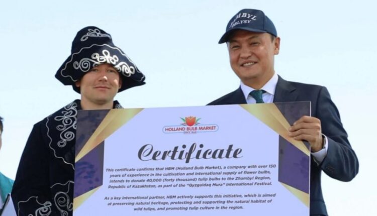 Биылғы фестивальдің басты жаңалығы – Нидерланд Корольдігі тарапынан Жамбыл облысына 40 мың түп қызғалдақ тұқымын тарту етті. Құнды сыйлықты Holland Bulb Market компаниясының менеджері, Нидерланд елінің өкілі Марсели Пьехна салтанатты түрде табыстады.