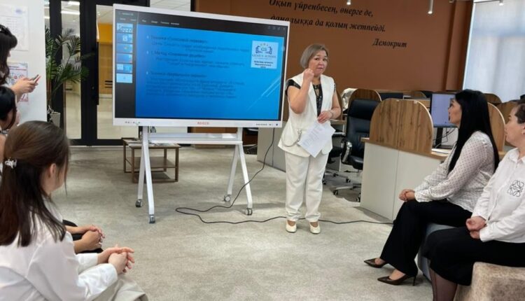 Кітапхананың директор орынбасары Кузенова Толқын Тәжітөреқызы «Ақылды көмекші: ЖИ-ді кітапханашының сенімді серігіне айналдыру жолдары» тақырыбында баяндама жасап, күнделікті кітапхана жұмысында тиімді қолдануға болатын ақысыз жасанды интеллект құралдары жөнінде пайдалы мәліметтермен бөлісті.