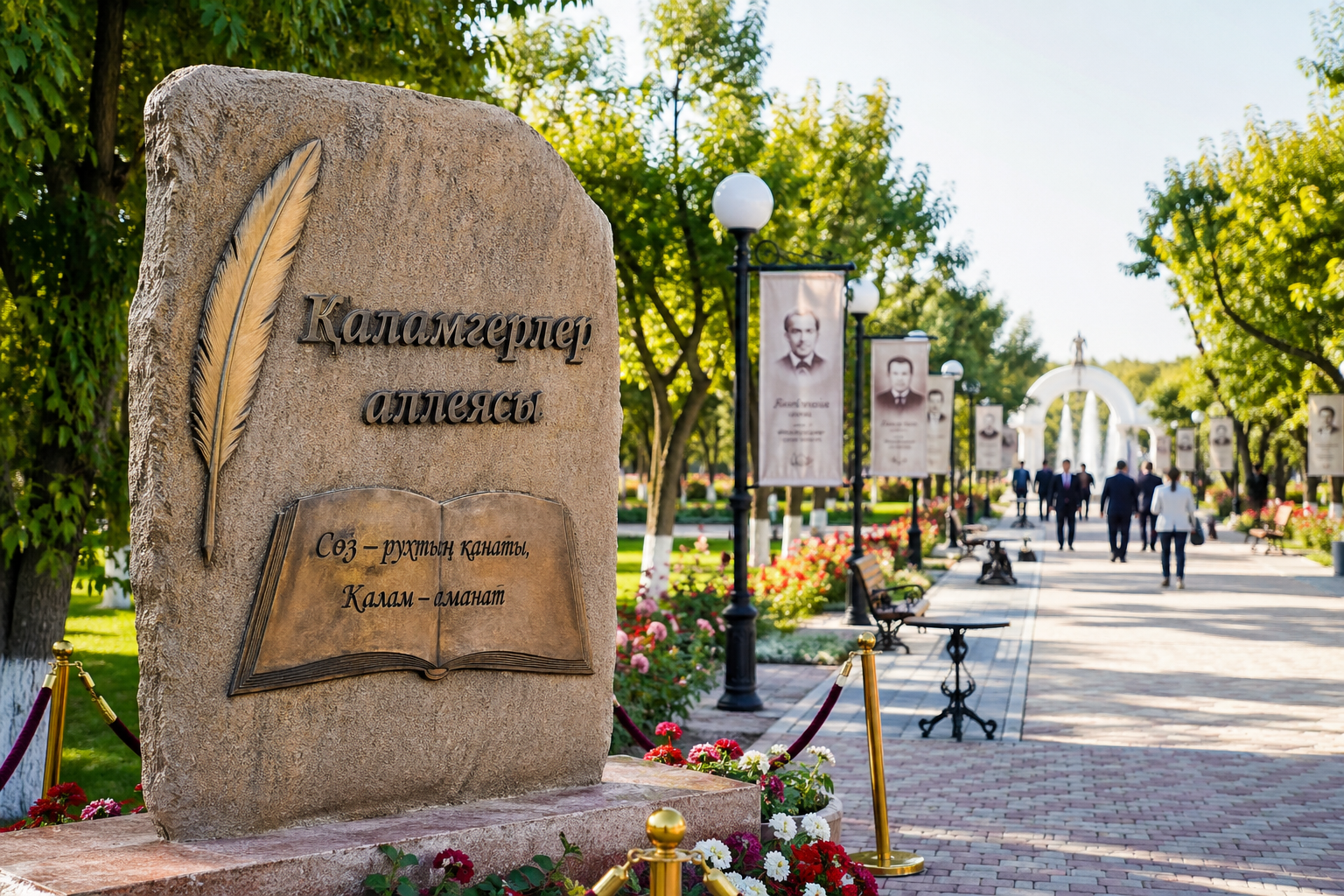 Әрине, мұндай орын әдеби кештер өтетін, поэзия оқылатын, жаңа кітаптар таныстырылатын мәдени алаңға айналары айқын. Сондықтан да бұл нысан қаланың рухани тынысын кеңейтеді. Мәселен, елордамыз – Астана қаласында 2019 жылы халық- аралық деңгейдегі қаламгерлердің қатысуымен арнайы «Қаламгерлер аллеясы» ашылып, әдеби ортаға жаңа тыныс берілген болатын. Аталған нысанда екі мүсіндік композиция орнатылған. Оның біреуінде қазақ әдебиетінің алыптары – Сәкен Сейфуллин, Ілияс Жансүгіров және Бейімбет Майлин бейнеленсе, екіншісі Алаш қозғалысының көшбасшылары – Ахмет Байтұрсынұлы, Әлихан Бөкейханов пен Міржақып Дулатовқа арналып жасалған.