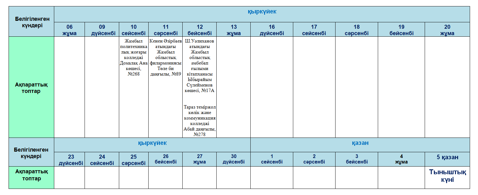 Ақпараттық топтардың Тараз қаласы сайлаушыларымен кездесуіне белгіленген үй-жайлардың бөлінісі (2024 жылдың 6 қыркүйек – 4 қазаны аралығы) Ресми On Қыр 6, 2024 0 287 Бөлісу 0 287 Бөлісу FacebookTwitterGoogle+ReddItWhatsAppPinterestEmail