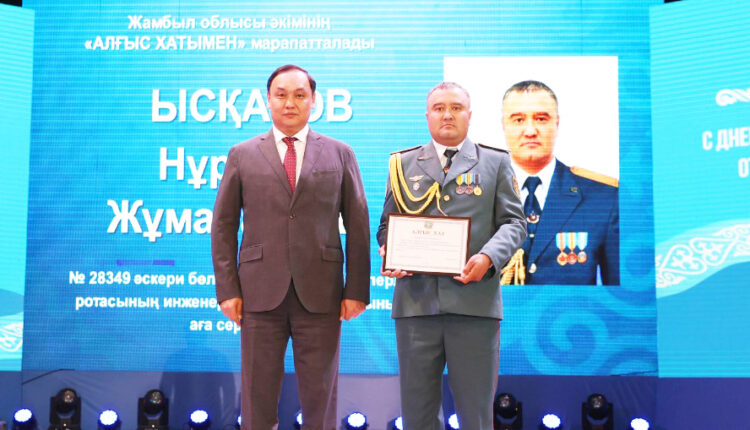 Мемлекет туған жері үшін аянбай еңбек етіп, әскери қызметке бүкіл ғұмырын арнаған отансүйгіш перзенттерін жан-жақты қолдауға айрықша мән беруде. Біздің міндетіміз – жаңа геосаяси ахуалға сай еліміздің қорғаныс қабілетін одан әрі нығайта түсу. Бүгінде әскеріміз – мемлекеттің қауіпсіздігі мен тұтастығының сенімді тірегі. Қарулы Күштеріміз ел шекарасын күзетіп қана қоймай, халықаралық деңгейде де бейбітшілік пен тұрақтылықты сақтау ісіне белсенді атсалысуда. «Тәртіпсіз ел болмайды, тәртіпке бағынған құл болмайды» деген қаһарман Бауыржан Момышұлының рухты сөзін өмірлік ұстанымына айналдырған сарбаздар қашан да ел мақтанышы болып қала береді, – деген аймақ басшысы көпжылғы жемісті еңбегі мен қызметтік міндеттерін үлгілі орындағаны үшін бірқатар азаматқа «Облысқа сіңірген еңбегі үшін» төсбелгісін және облыс әкімінің Құрмет грамотасы мен Алғыс хаттарын табыстады.