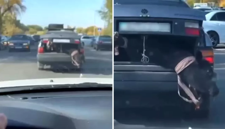 Алматы облысында жүргізуші жеңіл көлігінің жүс салғышына ірі қараны салып алған. Видеодан сиырдың төрт аяғы мен басы сыртқа шығып бара жатқаны байқалады.