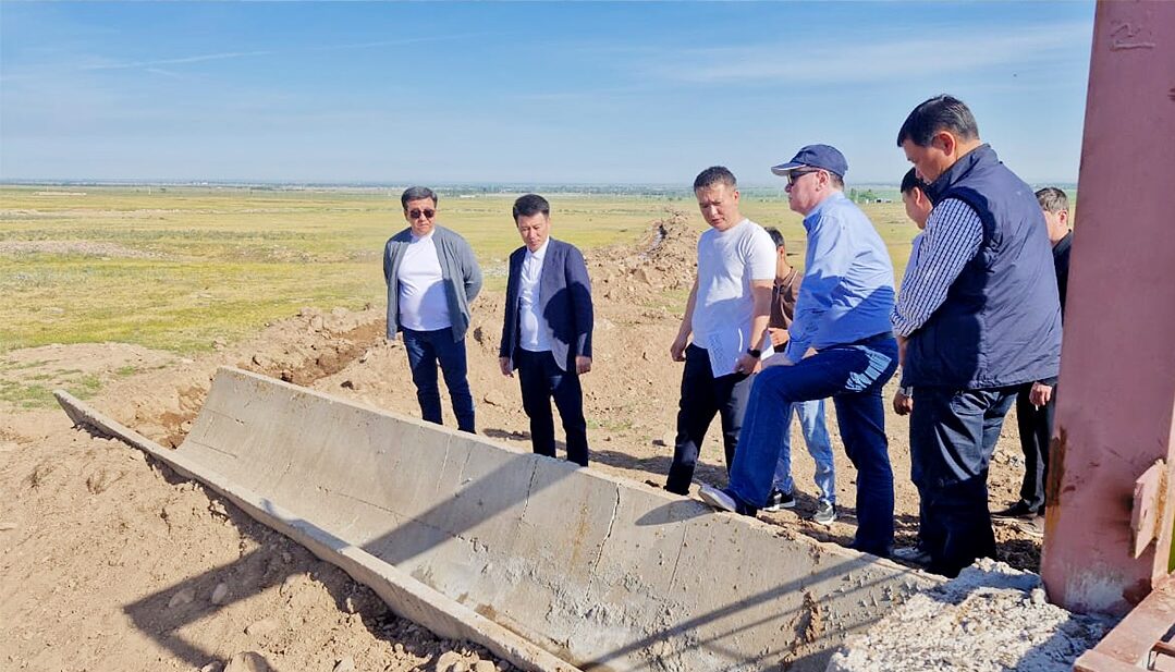 Т.Рысқұлов ауданының әкімі Ернар Есіркепов ауданға арнайы іссапармен келген ҚР Су ресурстары және ирригация министрлігінің Су шаруашылығы имараттарын дамыту департаментінің директоры Құдайберген Қорғанбаевпен бірге Абай ауылдық округінде салынып жатқан Қарақат су каналының құрылыс барысымен танысты.