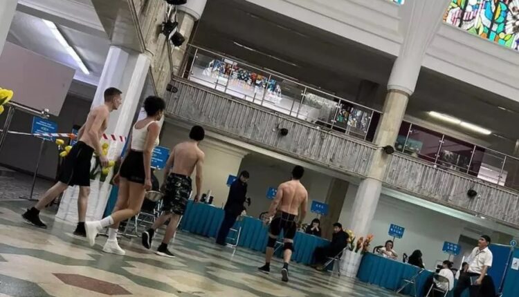 Астанада белгісіз біреулер қар жауып жатқанына қарамастан сайлау учаскесіне жартылай жалаңаш келген.