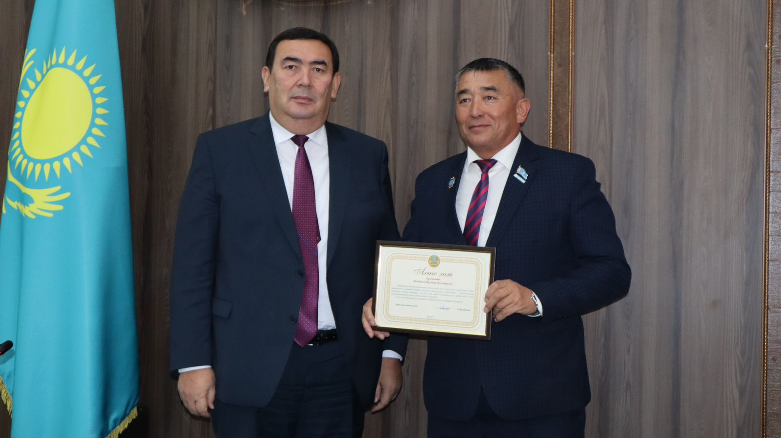 Бұдан кейін Тараз қалалық мәслихатының төрағасы Кенжебек Олжабай жылы лебізін білдіріп, біршама азаматты қалалық мәслихаттың Құрмет грамотасымен, Алғыс хатымен марапаттады.
