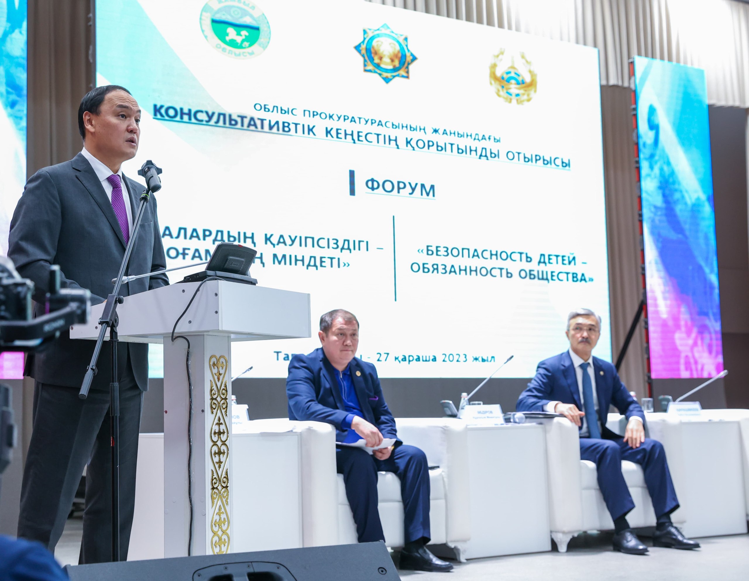Жамбыл облысының әкімі Ербол Қарашөкеев «Балалардың қауіпсіздігі – қоғамның міндеті» тақырыбында өткен ашық форумға қатысты.