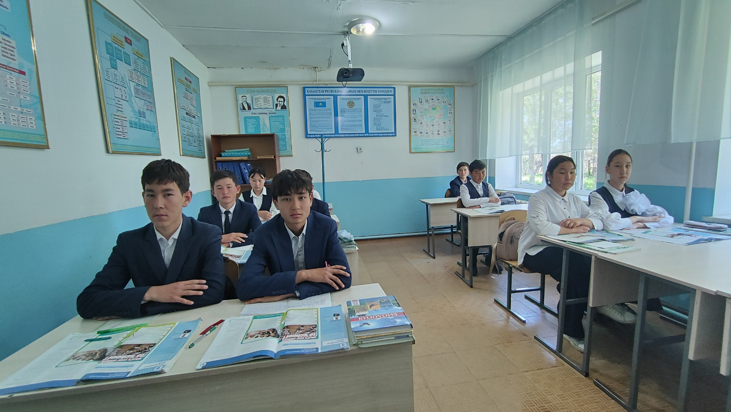 Beeline ұялы байланыс станциясы ауыл мектебінің жанында орналасқан. Сол жерде ауыл мектебінің 7-сынып оқушысын кездестіріп қалдық: