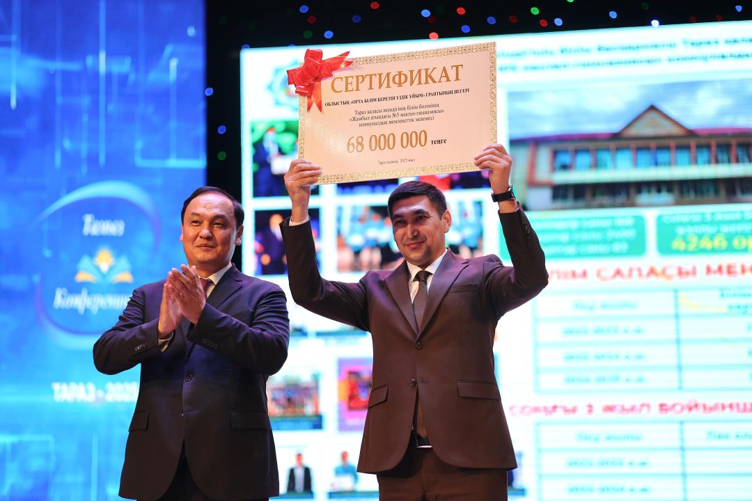 Тараз қаласы Жамбыл атындағы №5 мектеп-гимназия «Орта білім беретін үздік ұйым» грантын жеңіп алып, 68 млн теңгелік сертификатқа ие болды.