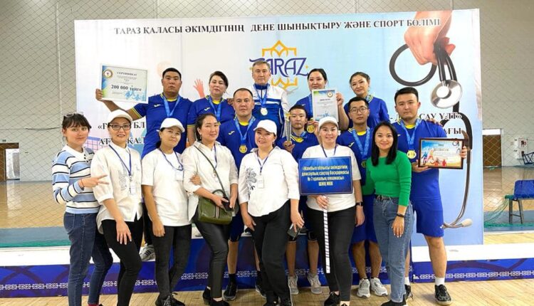 Жақсылық Үшкемпіров атындағы «Тараз-Арена» спорт сарайында Республика күніне орай «Медицина мақсаты – дені сау ұлт» атты қалалық емханалардың медицина қызметкерлерінің арасында волейболдан турнир өтті.
