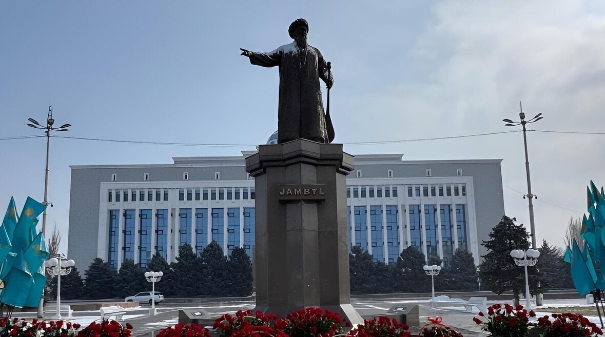 Бүгін қазақ халық поэзиясының алыбы, жыр дүлдүлі Жамбыл Жабаевтың туғанына 180 жыл толды. Осыған орай бүгін ақынның еңселі ескерткішіне гүл шоқтарын қою рәсімі өтті.