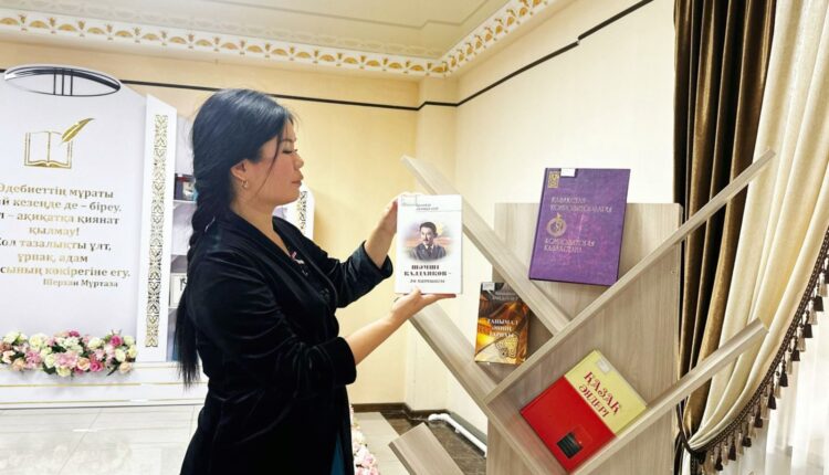Кітапхана сөресіндегі Ұлы композиторлар туралы оқулықтардан көрме ұйымдастырылып, көрермендерге ұсынылды.