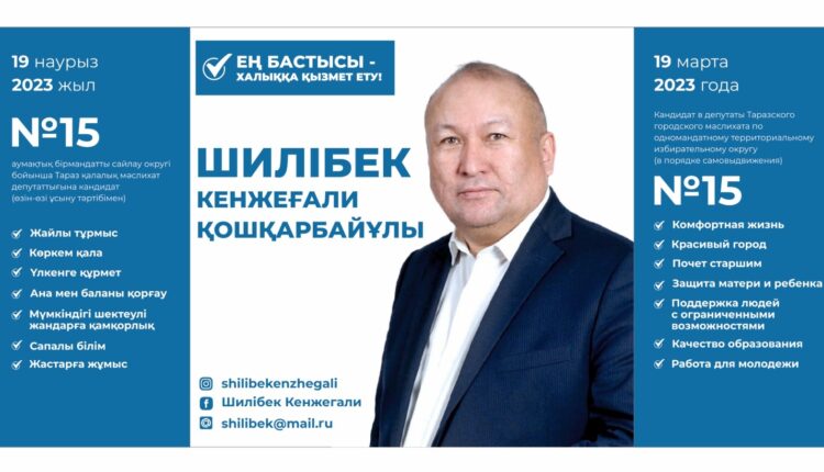 Тапсырыс беруші: №15 бір мандаттық аумақтық сайлау округі бойынша Тараз қалалық мәслихатының депутаттығына кандидат ШИЛІБЕК К.Қ.
