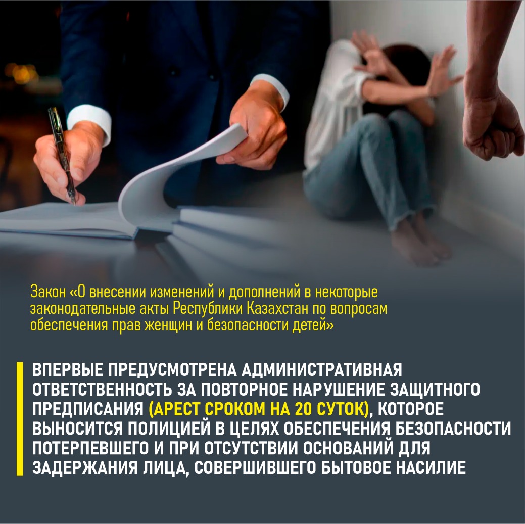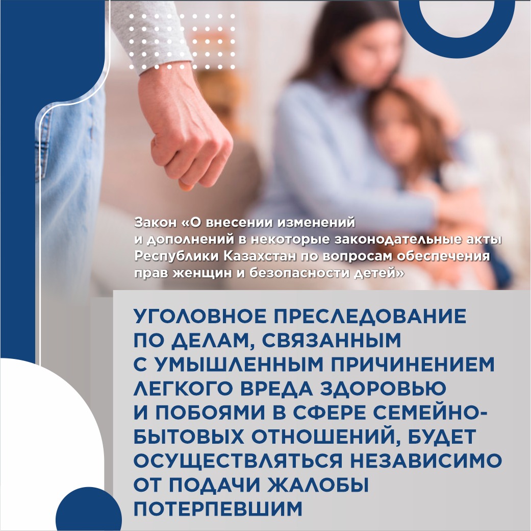 Напомним, соответствующие поручения по ужесточению наказаний за насилие в отношение женщин и детей были озвучены Главой государства в посланиях народу Казахстана от 16 марта 2022 года и 1 сентября 2023 года.