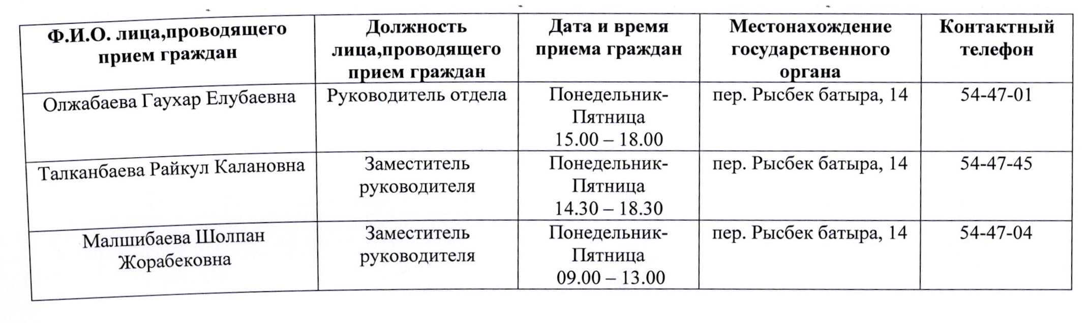 График приема граждан коммунального государственного учреждения «Отдел занятости и социальных программ акимата города Тараза» на ІІ квартал 2024 года