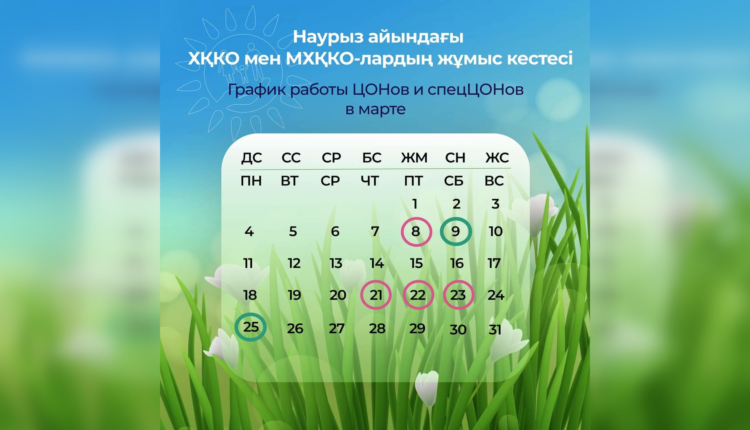 В связи с празднованием 8 Марта ЦОНы и спецЦОНы Казахстана не будут работать в этот день. На Наурыз центры не будут принимать граждан с 21 по 25 марта. При этом, отметим, дежурные будут работать в субботу 9 и 25 марта до 13:00.