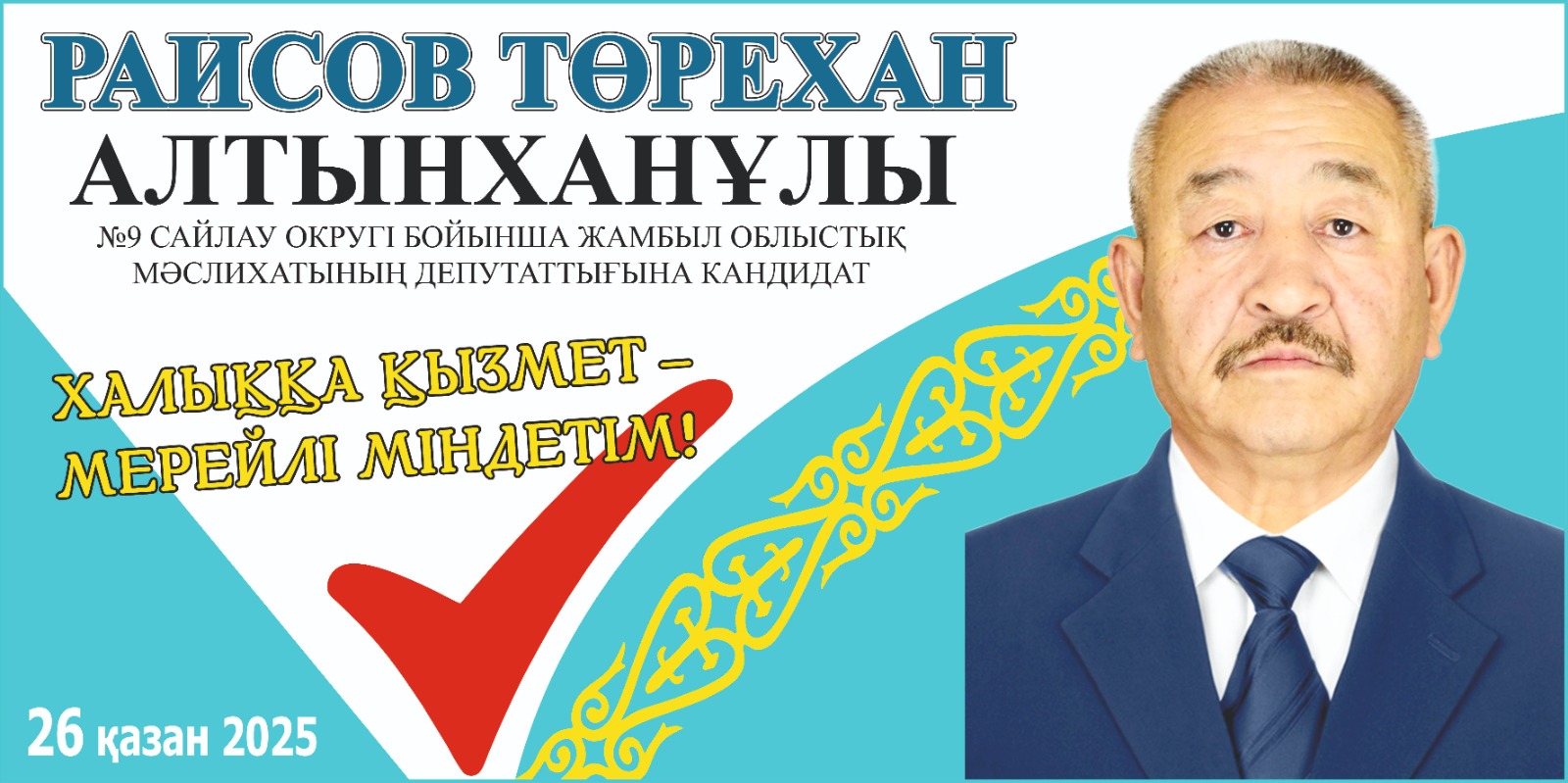 Тапсырыс беруші: №9 бірмандаттық аумақтық сайлау округі бойынша Жамбыл облыстық мәслихатының депутаттығына кандидат Раисов Т.А.