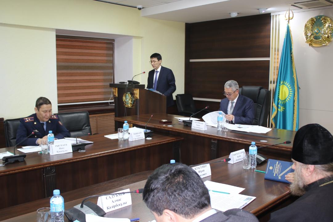Басқарма басшысы Сәкен Мыңбаев баяндама жасап, «Қазақстан Республикасындағы діни экстремизм мен терроризмге қарсы іс-қимыл жөніндегі 2018-2022 жылдарға арналған мемлекеттік бағдарламаның» орындалу нәтижесіне, сондай-ақ дін саласында жыл ішінде әр түрлі бағыттарда басқармамен атқарылған жұмыстарға егжей-тегжейлі тоқталды.