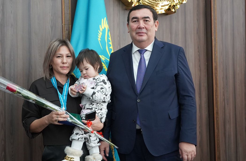 Тараз қаласының әкімі Бақытжан Орынбековтің қатысуымен көпбалалы аналарды «Алтын» және «Күміс» алқаларымен наградтау рәсімі өтті.