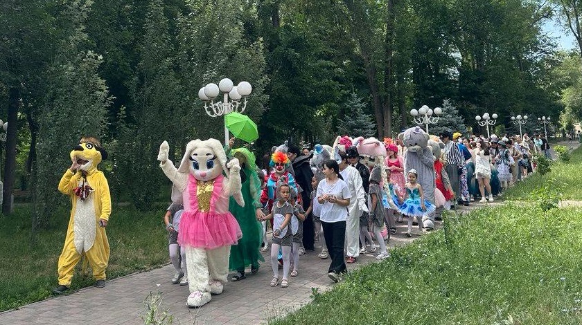 Балаларға шын көңілден шаттық көңіл – күй сыйлап, мерекеге жақсы көңіл – күй керек екенін балаларға ұғындыруды мақсат етіп, ашық аспан астында ерекше форматта ұйымдастырылған шараға қала қонақтары, саябақта қыдырып жүрген балалар қатысты. Алаңда ертегі кейіпкерлері жұмбақтар ойынын, интерактивті, ұлттық ойындар ойнатып, балалар әдебиетінің кейіпкерлерінің шеруі жиналғандарға жағымды көңіл күй сыйлады.