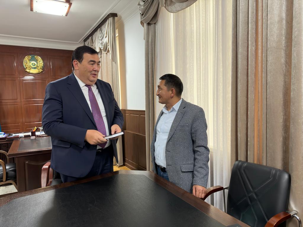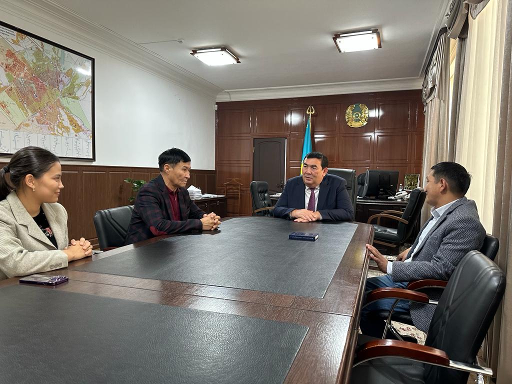 Тараз қаласының әкімі Бақытжан Орынбеков Халықаралық айтыс ақындары мен жыршы-термешілері одағы Жамбыл облыстық филиалының төрағасы Ахметжан Өзбеков, белгілі айтыскер ақын Айтмұхамбет Исақов және республикалық айтыстардың жүлдегері, ақын Алина Айдаралымен кездесті.