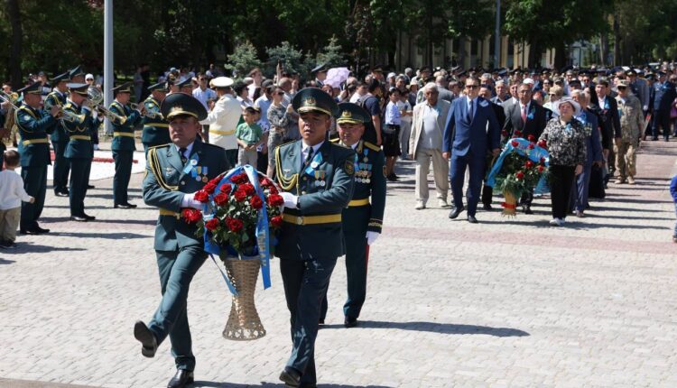Осыған орай Жамбыл облысының әкімі Ербол Қарашөкеев пен Тараз қаласының әкімі Бақытжан Орынбеков Бауыржан Момышұлы атындағы «Жеңіс» саябағында Мәңгілік алауға гүл шоқтарын қою рәсіміне қатысты.
