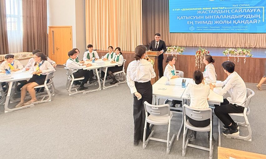 Дүниежүзілік сайлау күніне орай жастардың азаматтық белсенділігін арттыру, сайлау және дауыс беру үдерісі туралы мағлұмат беру, жастар арасында құқықтық сауаттылықты арттырып, сайлау мәдениетін қалыптастыру мақсатымен Тараз қаласында «Менің таңдауым – ел болашағы» тақырыбында интеллектуалдық quiz ұйымдастырылды.