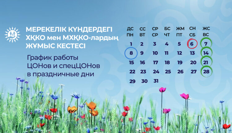 Мерекелік күндердегі ХҚКО мен мамандандырылған ХҚКО-лардың жұмыс кестесі