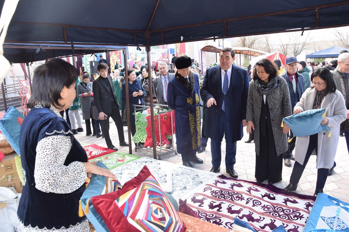 Әуелі қала әкімі Бақытжан Орынбеков қолөнершілердің туындылары орналастырылған көрмені тамашалап, ізгі лебізін білдірді.