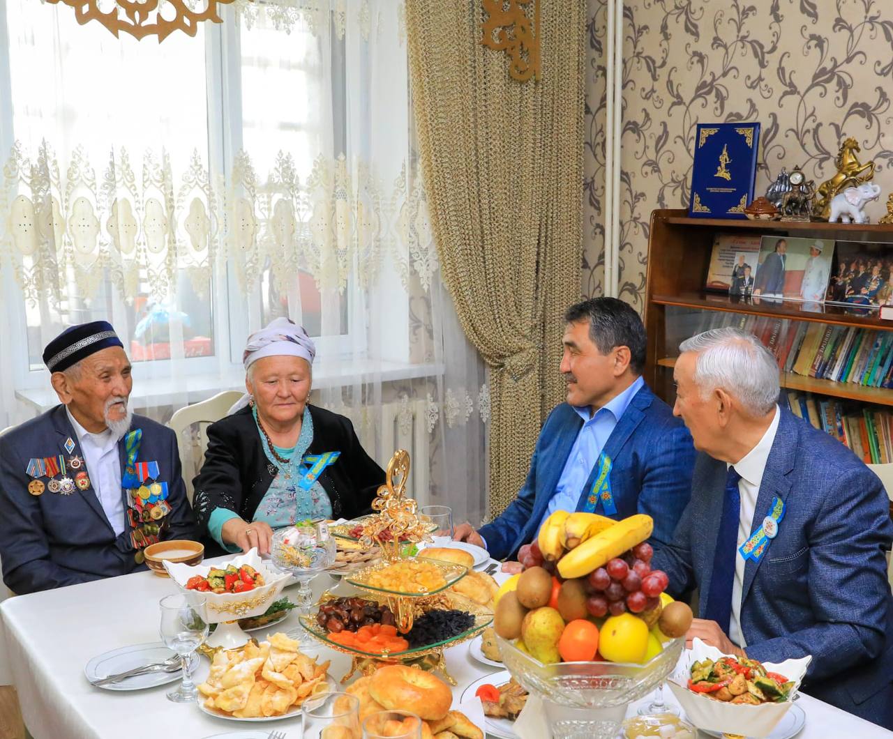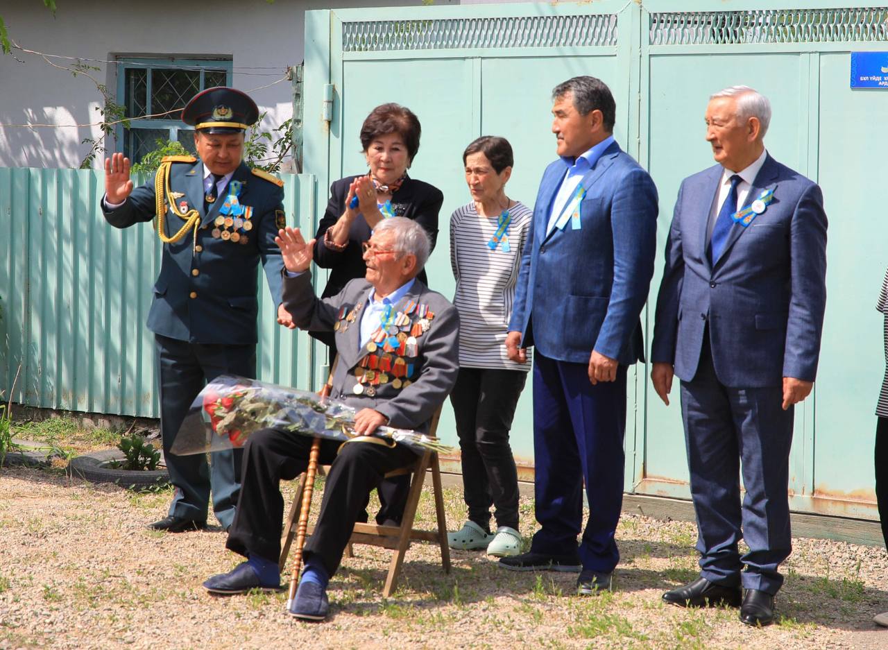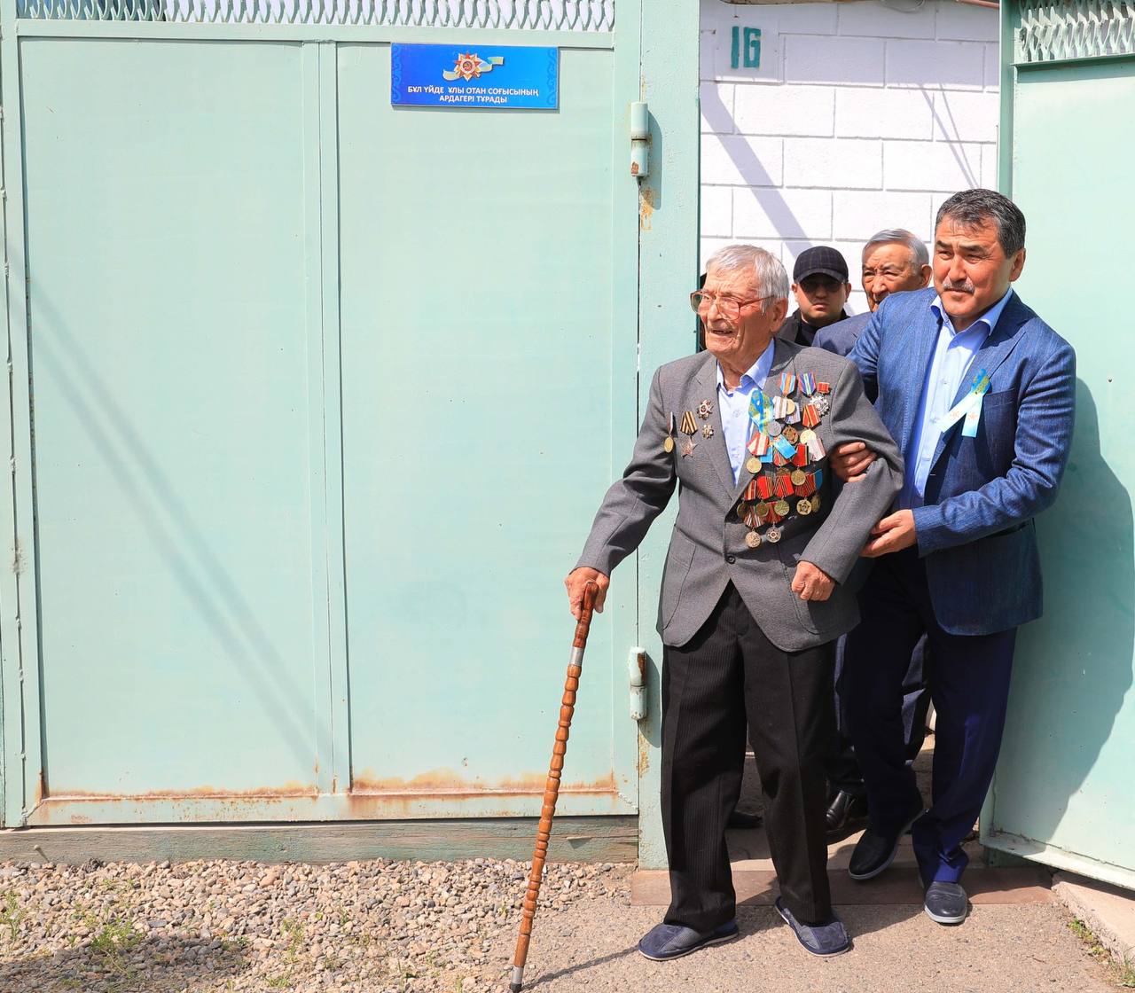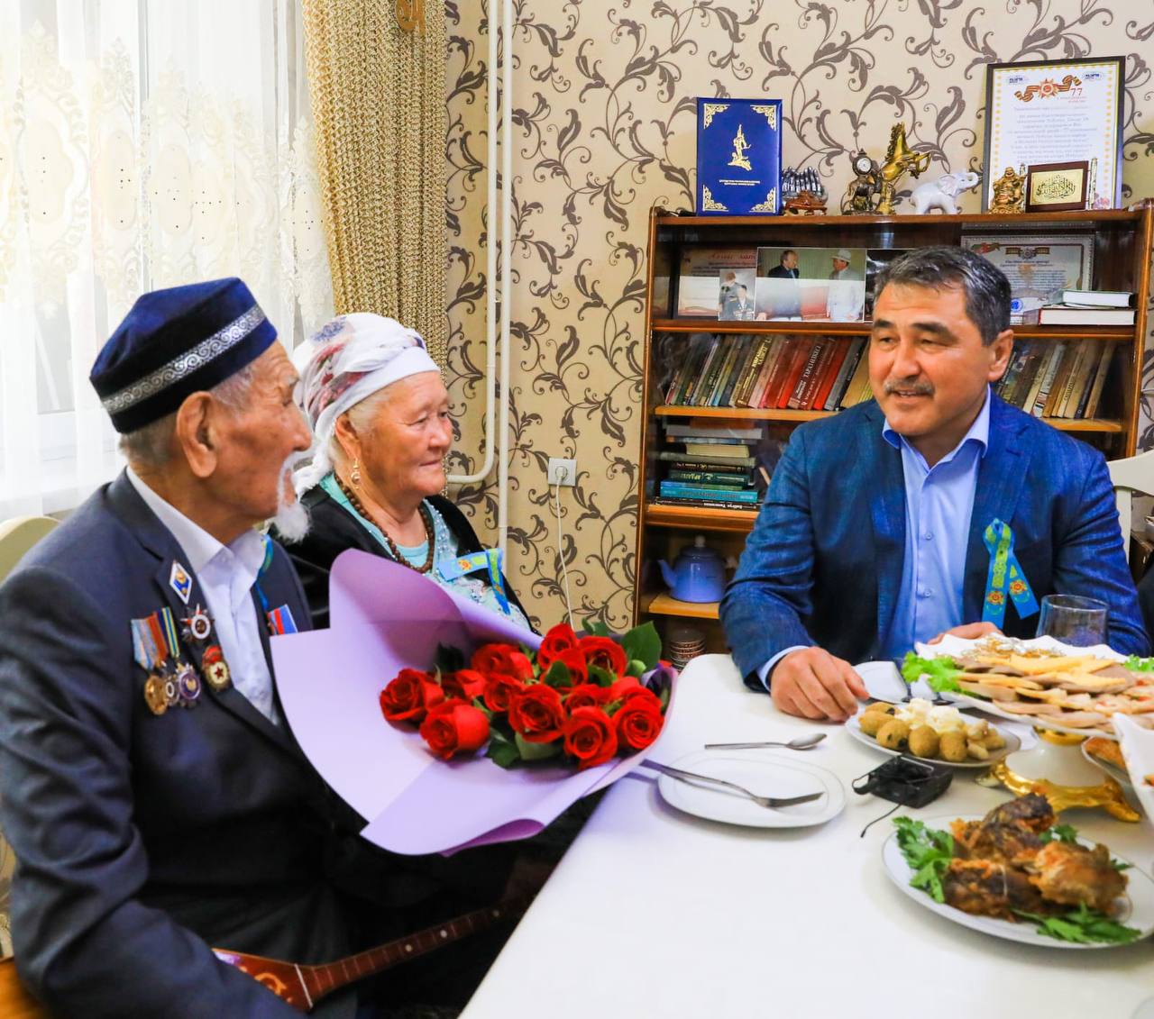 Алдымен соғыс және еңбек ардагері Мүтәліп Ережаппайдың шаңырағына арнайы барған аймақ басшысы, қарияны Жеңіс күнімен құттықтап, ерлігі, Отанға деген адалдығы, риясыз еңбегі үшін алғысын білдіріп, соғыстың ардагерлері ерлік пен қайсарлық үлгісі болып қала беретінін баса айтты.