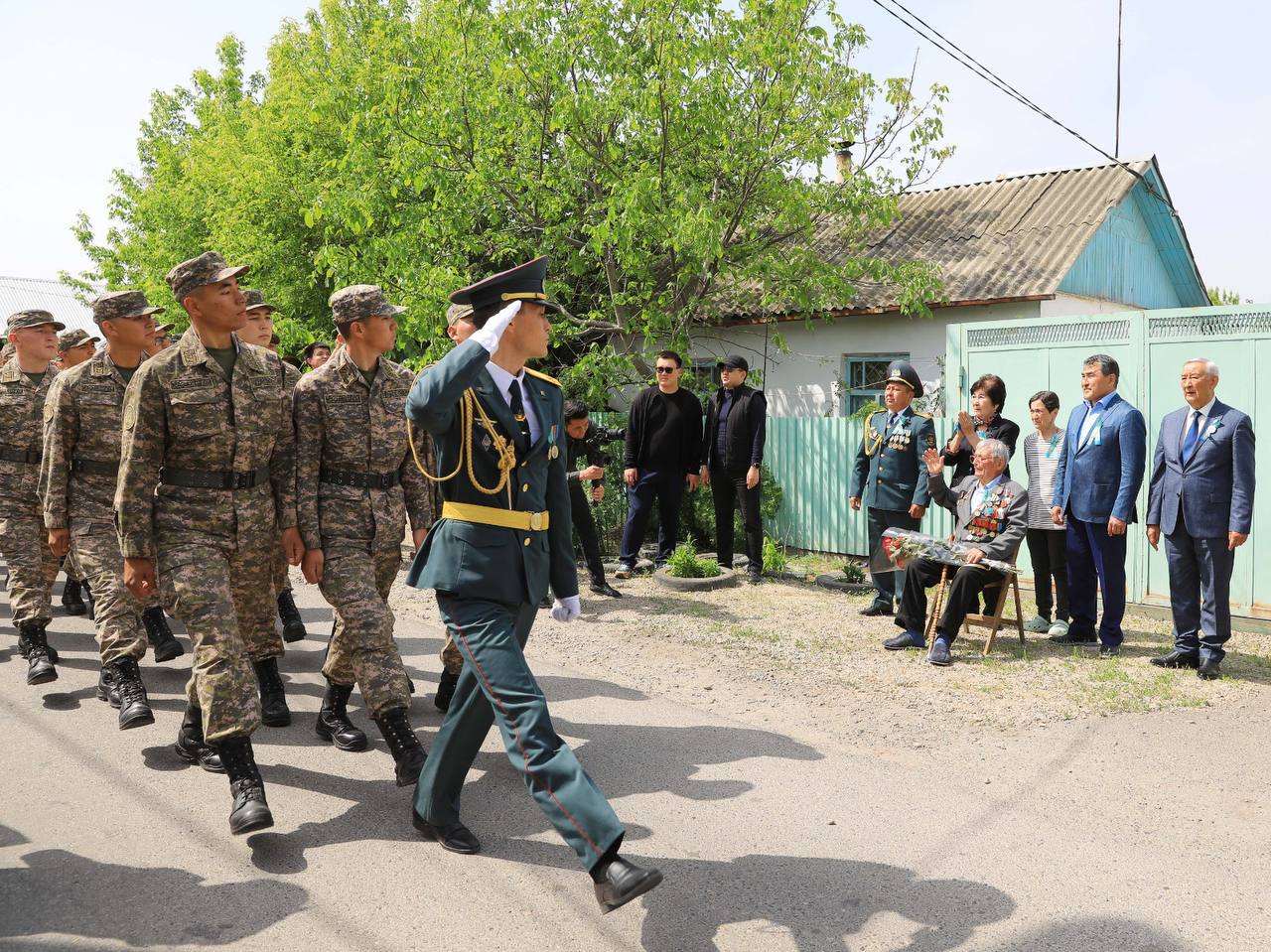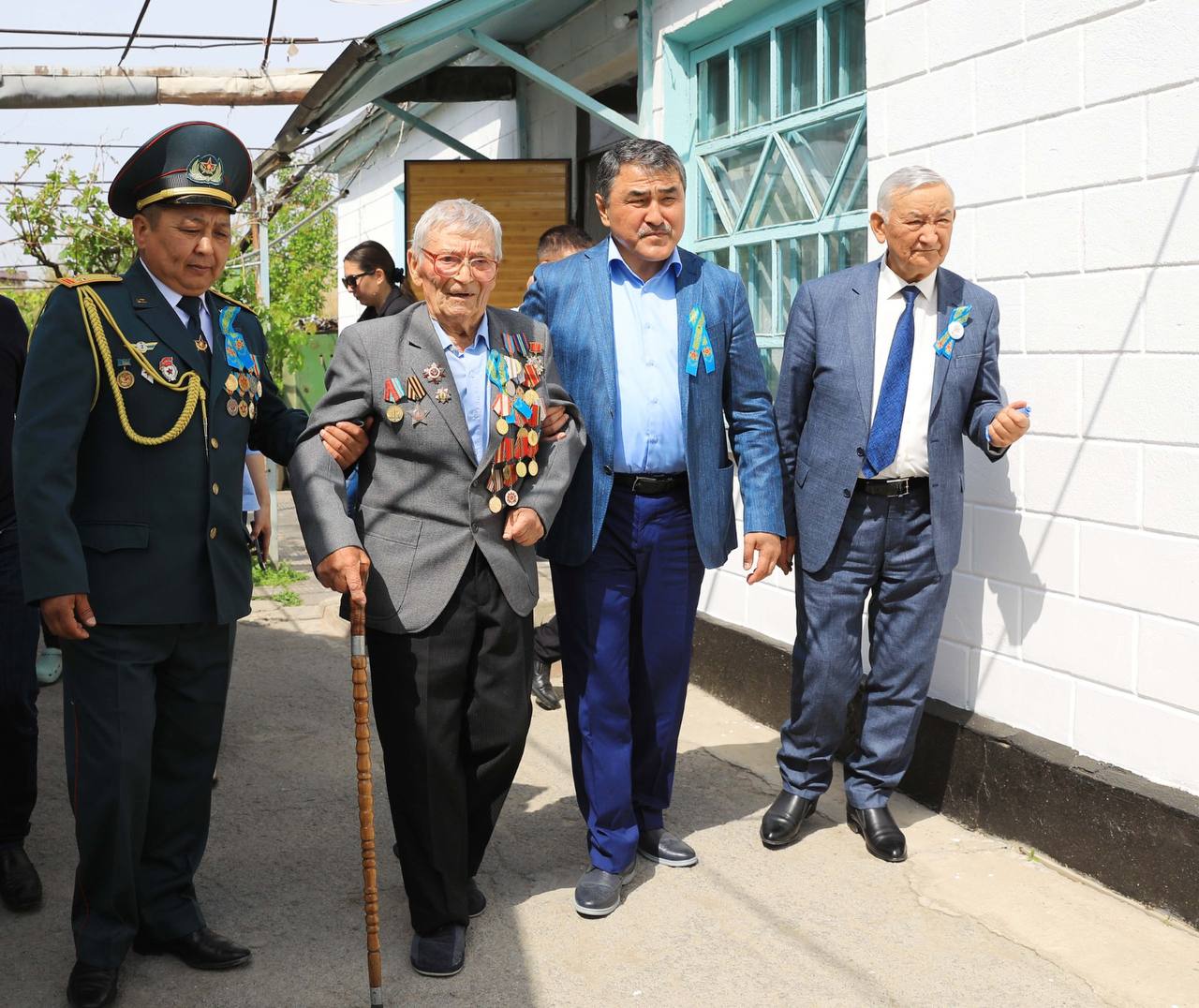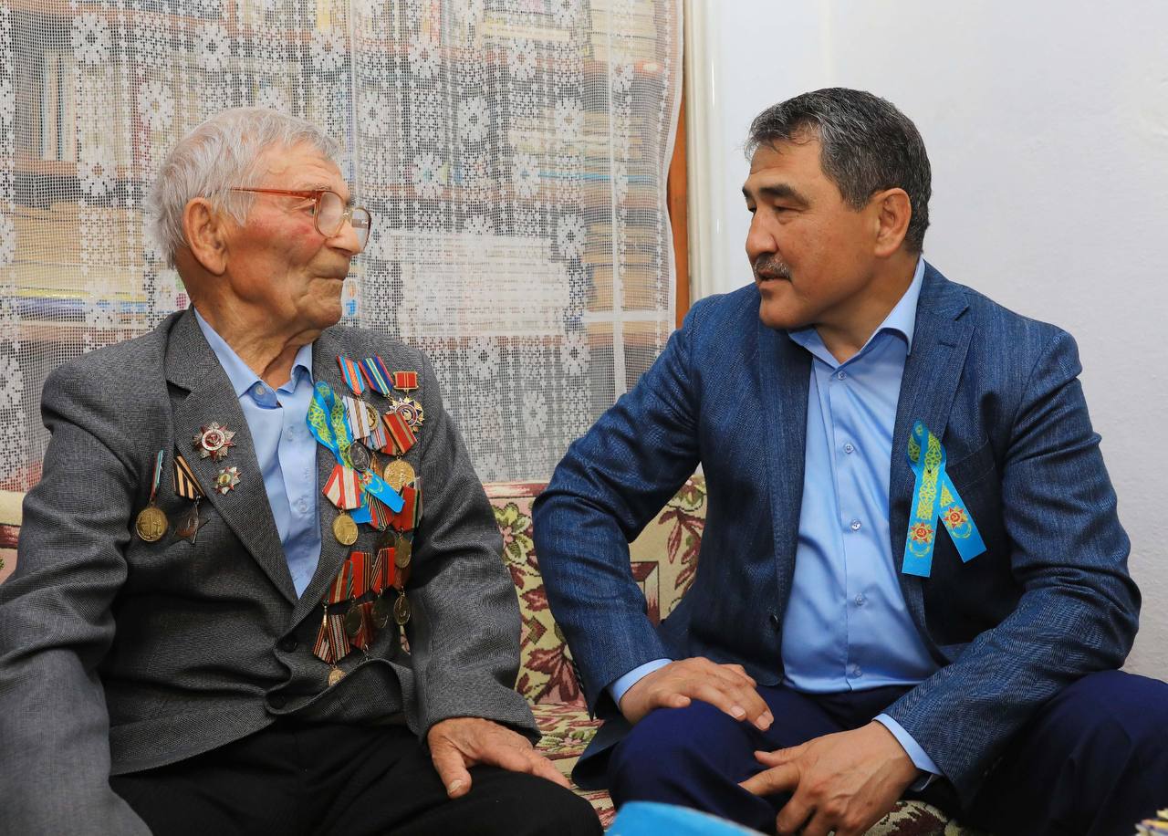 Жамбыл облысының әкімі Нұржан Нұржігітов пен облыстық ардагерлер кеңесінің төрағасы Еркінбек Солтыбаев Ұлы Жеңіс мерекесіне орай соғыс ардагерлерінің үйіне барып құттықтады.