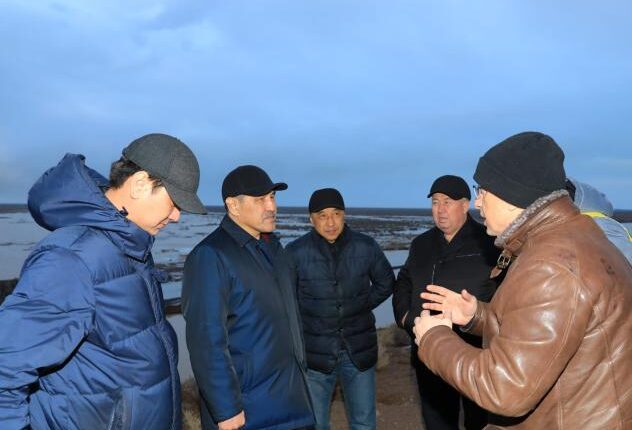Аким Жамбылской области Нуржан Нуржигитов ознакомился с ходом работ по отводу талой воды  на территории Мойынкумского района.