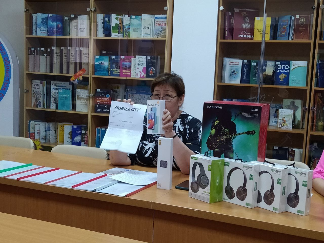 Ш.Айтматовтың «Ақ кеме» повесі желісімен жазған пікірінде көркем шығарманың өзіне ұнаған тұстарын, әсірелеп баяндау тәсілін жетік меңгергендігін ескеріп, «Кітапхана досы» номинациясы бойынша Қызылорда облысынан қатысқан 10 сынып оқушысы Сұлтанғазиева Ақжан смарт сағатымен марапатталады.