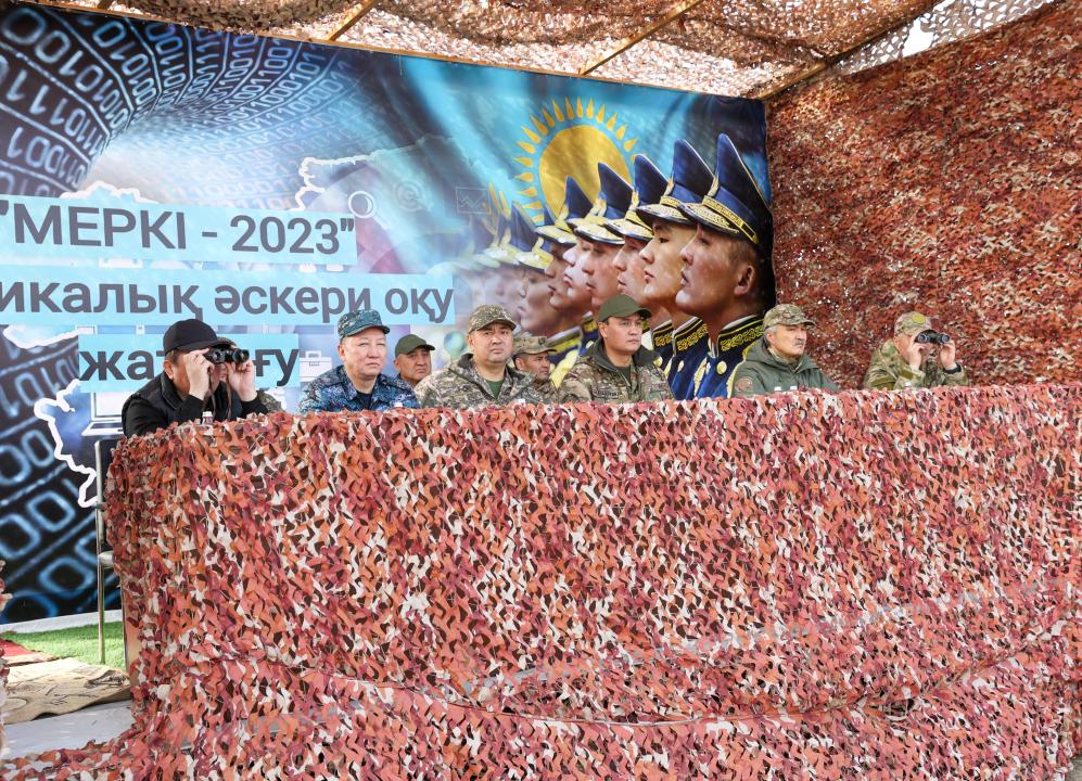 Жамбыл облысының әкімі Ербол Қарашөкеев, облыс прокуроры Нұрғалым Әбдіров, Ұлттық қауіпсіздік комитеті департаментінің бастығы Серік Бегалиев,«Оңтүстік» өңірлік  қолбасшылығы  әскерінің қолбасшысы Мереке Көшекбаев, Полиция департаментінің бастығы полиция генерал-майоры Арманбек Баймурзин, облыс бойынша Сыбайлас жемқорлыққа қарсы іс-қимыл агенттігінің департамент басшысы Болат Жылқыбаев «Мүңке» әскери полигонында өткен «Меркі-2023» тексеру жиынының жабылуына қатысты.