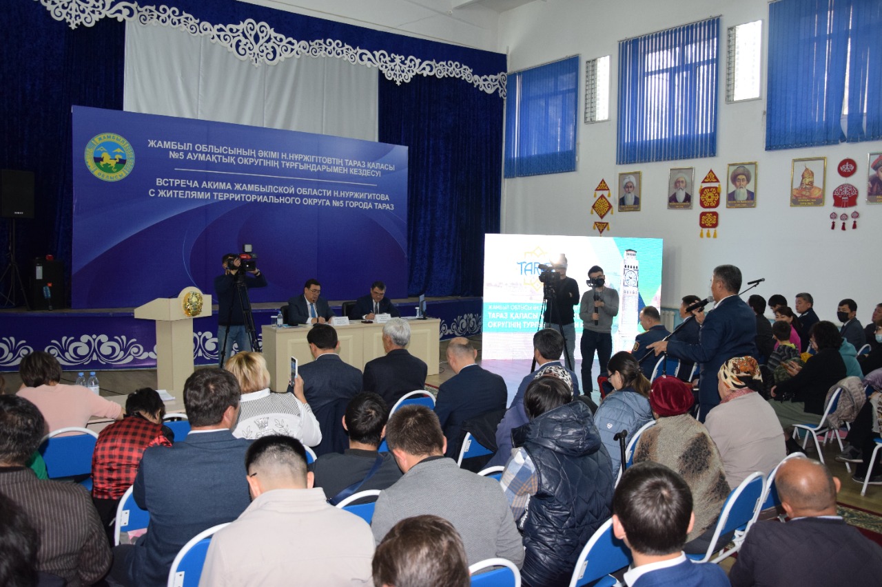 Жамбыл облысының әкімі Нұржан Нұржігітов Тараз қаласы №5 аумақтық округінің тұрғындарымен кездесті. Басқосуға қала әкімі Бақытжан Орынбеков, облыс әкімдігі басқармаларының, қала әкімдігі бөлімдерінің және құқық қорғау органдарының басшылары қатысты.