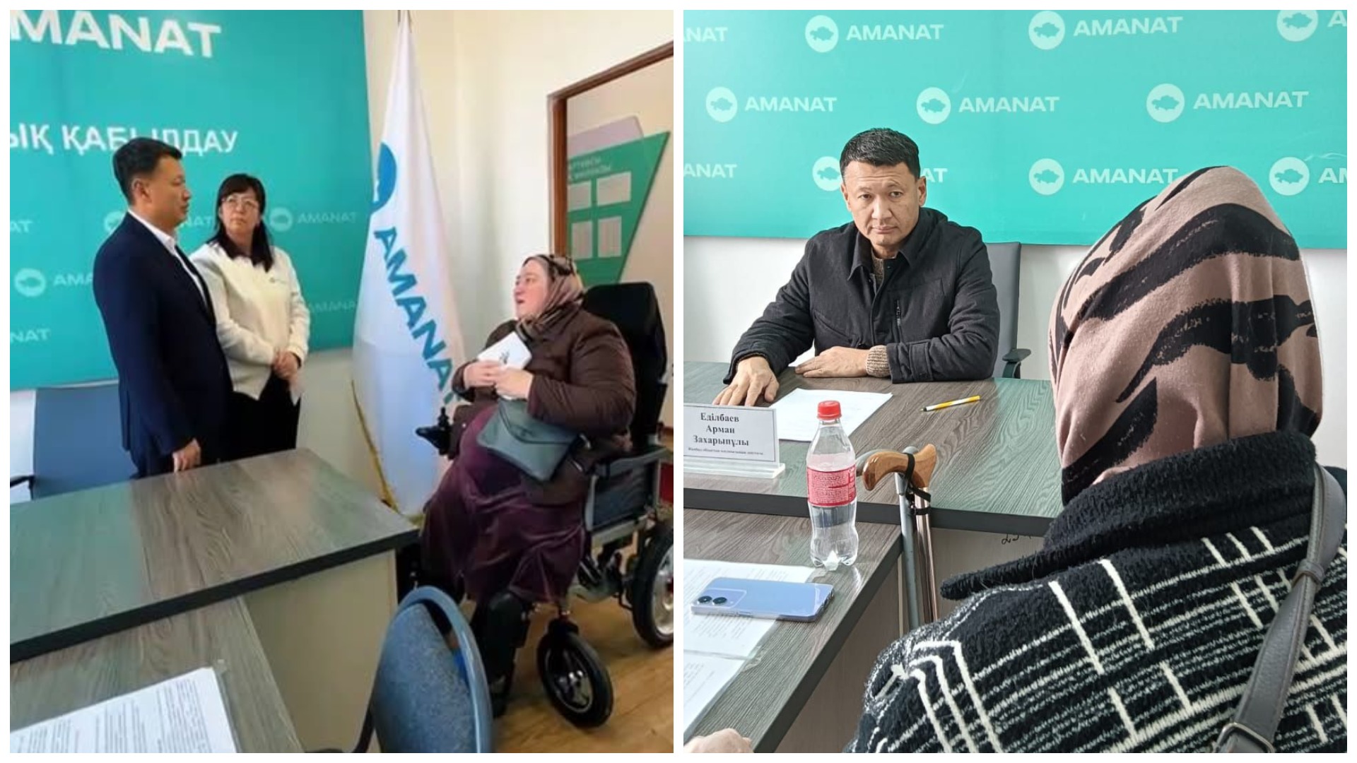 Өтініш иесінің тұрмыс жағдайын ескерген облыстық мәслихаттың депутаты Арман Захарыпұлы жеке қабылдауында жалғызбасты жанға көмегін беруге уәде еткен. Осылайша, өтініш иесінің тілегі орындалып, өзі қалағандай электрқозғалтқышы бар көпфункционалды мүгедек арбасы табысталды.
