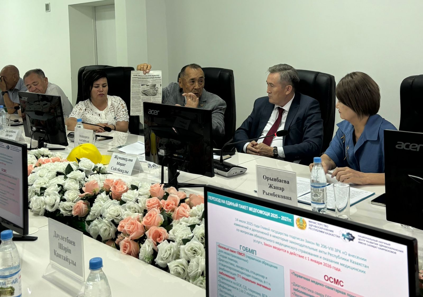 В Таразе состоялся круглый стол по вопросам совершенствования системы обязательного социального медицинского страхования (ОСМС). В мероприятии приняли участие директор областного филиала Фонда социального медицинского страхования Гайни Аймаганбетова, представители областного и городского Совета ветеранов, председатель областного филиала РОО Общенациональное движение против коррупции «Жанару» Касымхан Толендиев, секретарь Общественного совета Жамбылской области Жанар Орынбаева, председатель ОО «Общество молодых людей с инвалидностью» Айгерим Даулетбаева, директор-главный редактор областной газеты «Ғұмыр-Дария» Жанабай Миллионов, главный врач многопрофильной больницы Жамбылской области Марат Жуманкулов, а также другие представители медицинского сообщества и эксперты.