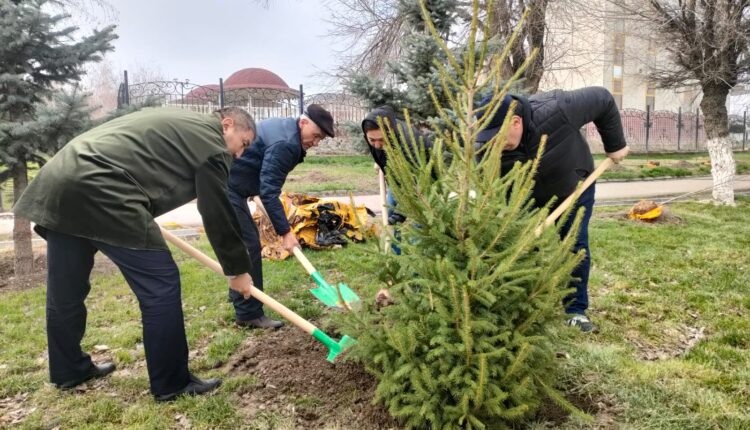 В ходе субботника аким города Тараза Бахытжан Орынбеков вместе с представителями интеллигенции и общественными активистами посадил голубую пихту, зеленую пихту, крымскую сосну, платан от моста Тауке-хана по улице Толе би до Парка Первого Президента.