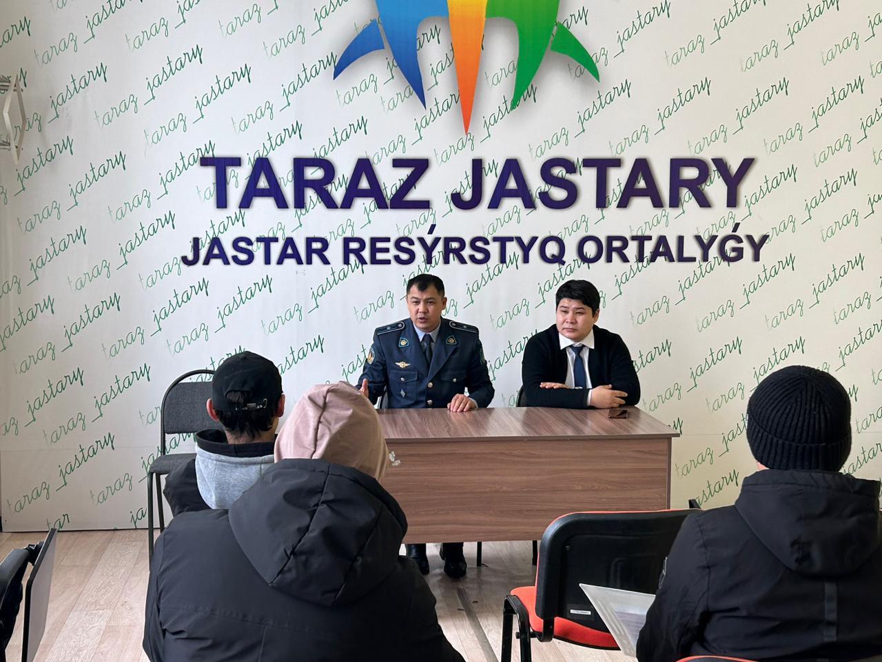 Кездесуге Тараз қалалық 1 ПҚ бөлім бастығы, әділет майоры Айбек Ниязымбетов және Мансап орталығының мамандары қатысты.