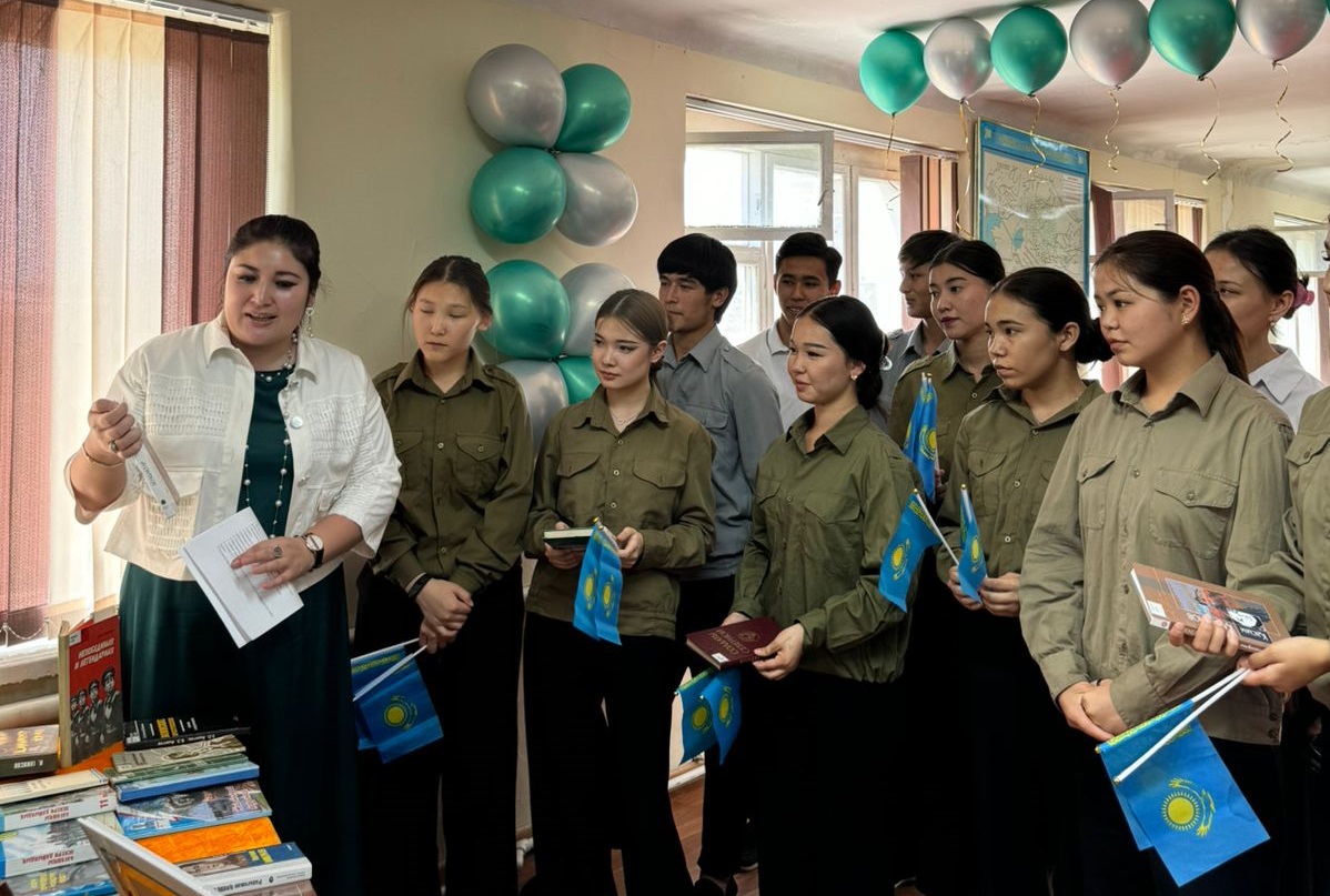 Жас ұрпақты Отанын сүю, патриоттық тәрбие беру мақсатында кітапхана қызметкерлері 7 мамыр – Отан қорғаушылар күніне орай «ALEM» кәсіби білім беру колледжінің білімгерлерімен «Ұранды ердің – ұрпағы қайсар» ерлік сағатын өтті.