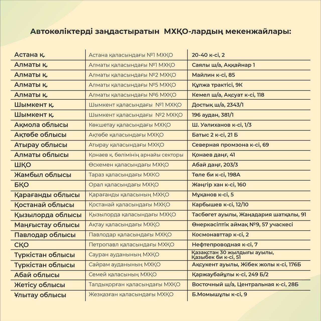 2. Өтінімді Қазақстан Республикасының Ішкі істер министрлігі қарайды. Егер сіздің жеке кабинетіңізге өтініштен бас тарту жөнінде хабарлама келген жағдайда, МХҚО-ға барудың қажеті жоқ. Бас тарту себептерін білу үшін тікелей мемлекеттік органға хабарласуыңыз керек. Сіздің өтінішіңіз қабылданған болса, автокөлікті тексеру үшін МХҚО-ға онлайн кезекке тұру қажет. Ол үшін мәртебе парағында «кезекке тұру» батырмасын басып, мекенжайлар тізімінде көрсетілген МХҚО-ның бірін таңдап, соныңда күні мен уақытын белгілеу керек. Алдын ала онлайн кезекке тұрмаған жағдайда, азаматтарға қызмет көрсетілмейді.