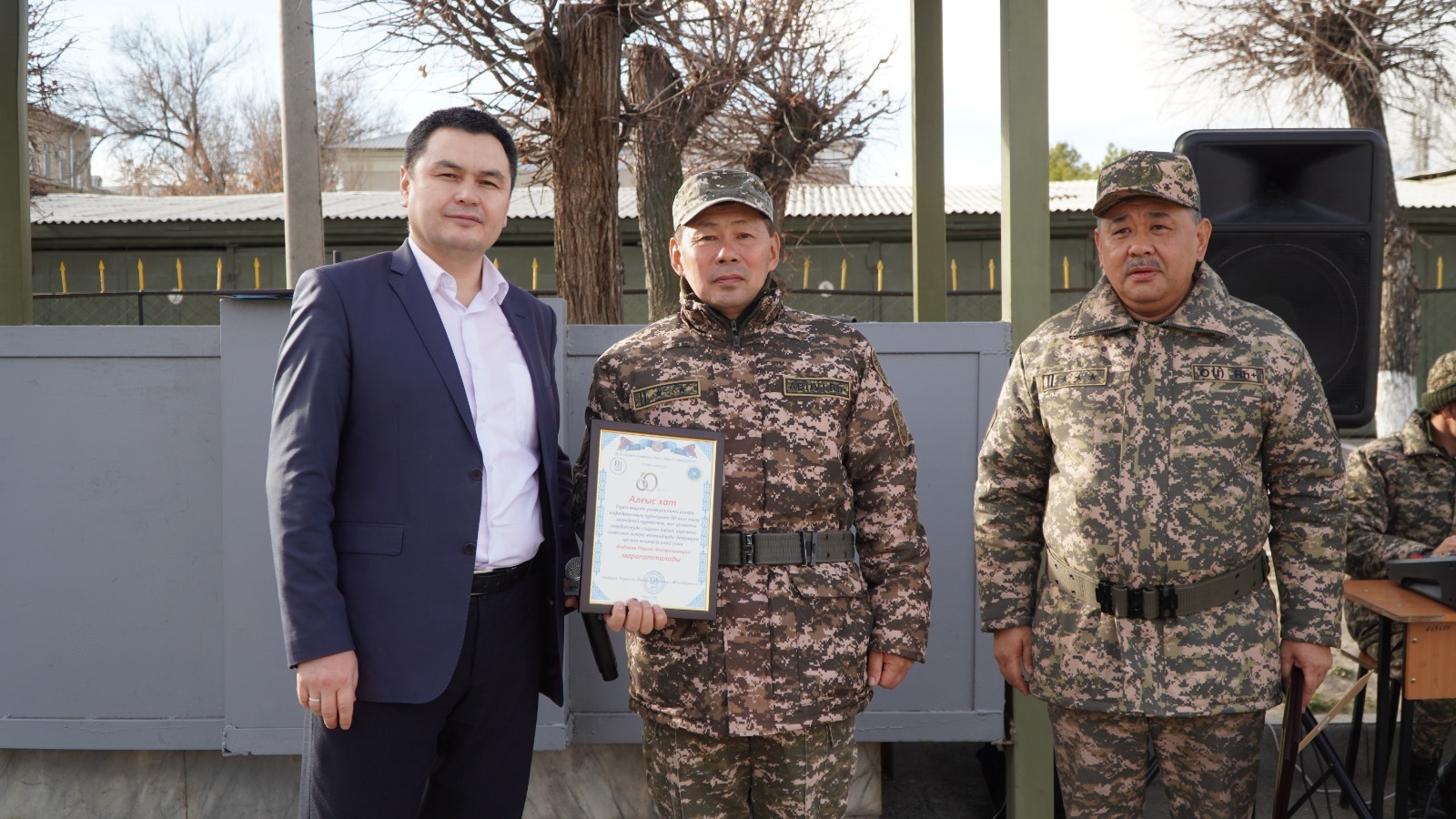 Жиында алдымен Әлеуметтік-мәдени даму жөніндегі проректор Аслан Тұрлыбек сөз алып, мерейлі датамен құттықтады. 60 жыл аз уақыт емесін айтып, осы уақытқа дейін тәрбиеленген мамандардың ел қауіпсіздігін қамтамасыз етуде қосқан үлесінің аз емесін атап өтті.
