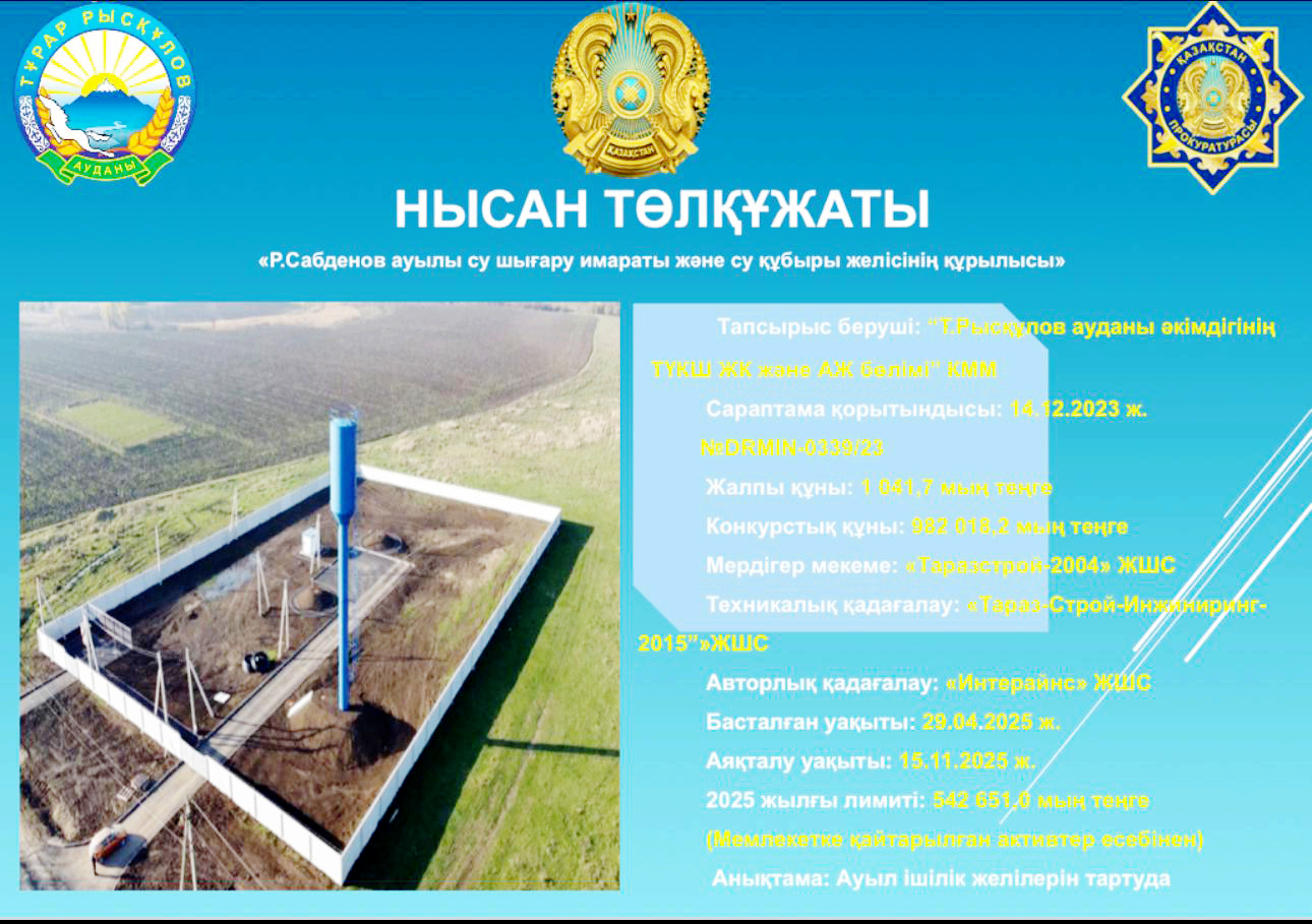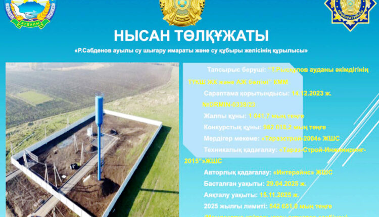 2025 жылы Рахым Сәбденов ауылында ауыз су жүйесін тарту жобасы аясында жалпы 982,0 млн. теңге көлемінде қаржы қарастырылған. Бұл қомақты қаражат ауыл тұрғындарының көптен күткен тілегінің орындалуына жол ашып отыр.