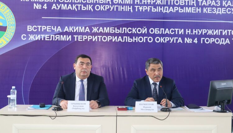Жамбыл облысының әкімі Нұржан Нұржігітов Тараз қаласындағы №4 аумақтық округтің тұрғындарымен кездесті. Әуелі қала әкімі Бақытжан Орынбеков округте атқарылған жұмыстар жөнінде кеңінен баяндады.