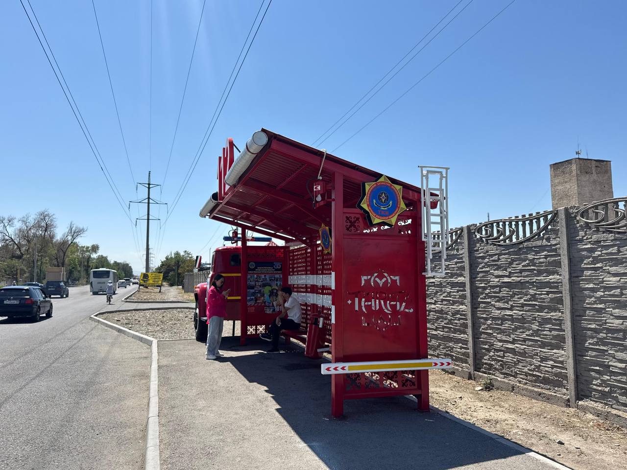 №4 қалалық өрт сөндіру бөлімі жанында орналасқан жаңа аялдама өрт сөндіру көлігінің кабинасы түрінде жасалған. Ол бүгінде қала келбетін айшықтап, тұрғындар мен қонақтардың қызығушылығын тудырып отыр.