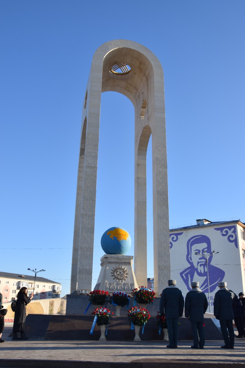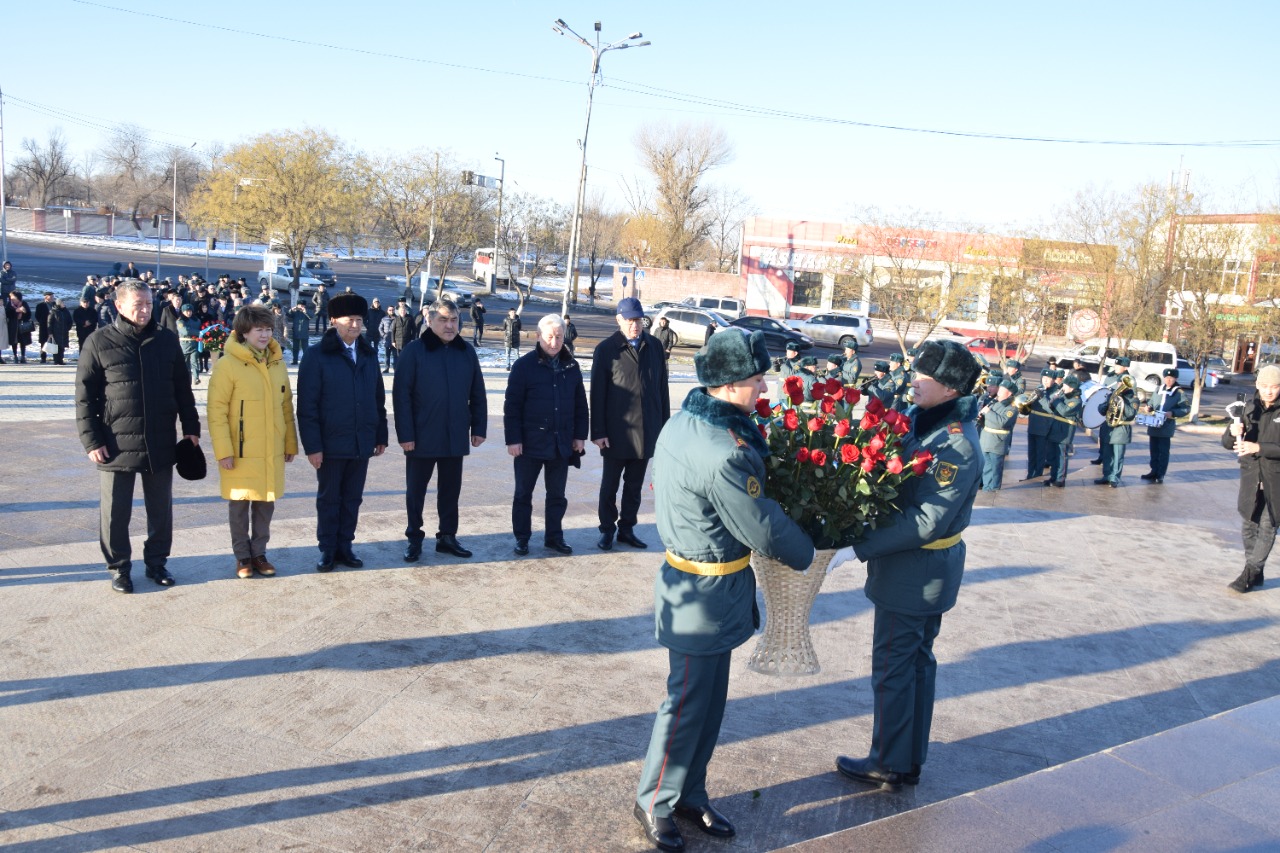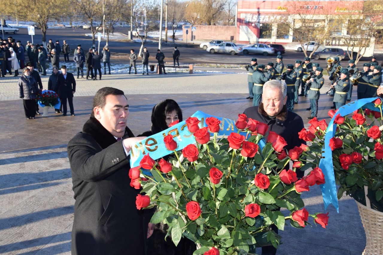 Осыған орай облыс әкімі Нұржан Нұржігітов, шаһар басшысы Бақытжан Орынбеков бастаған азаматтар «Тәуелсіздік Қазақстан» монументіне гүл шоқтарын қойды.