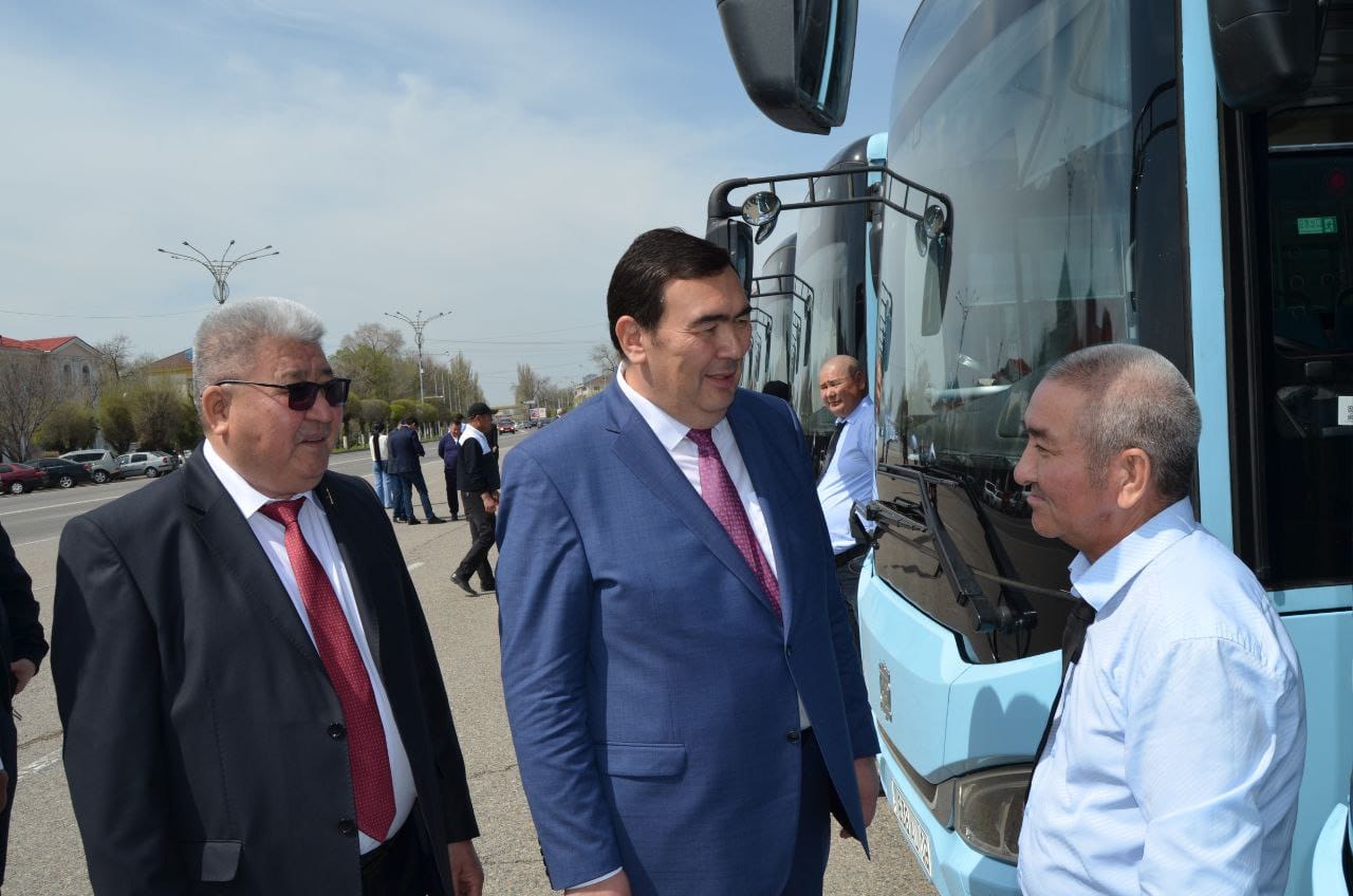 Бүгін 31 автобус ел игілігіне берілді. Шараға Тараз қаласының әкімі Бақытжан Орынбеков арнайы қатысып, автобус кілттерін салтанатты түрде табыстады.