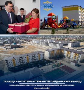 Бүгін Тараз қаласындағы «Ұлы дала» шағын ауданында 460 пәтерлі 6 тұрғын үй пайдалануға берілді.